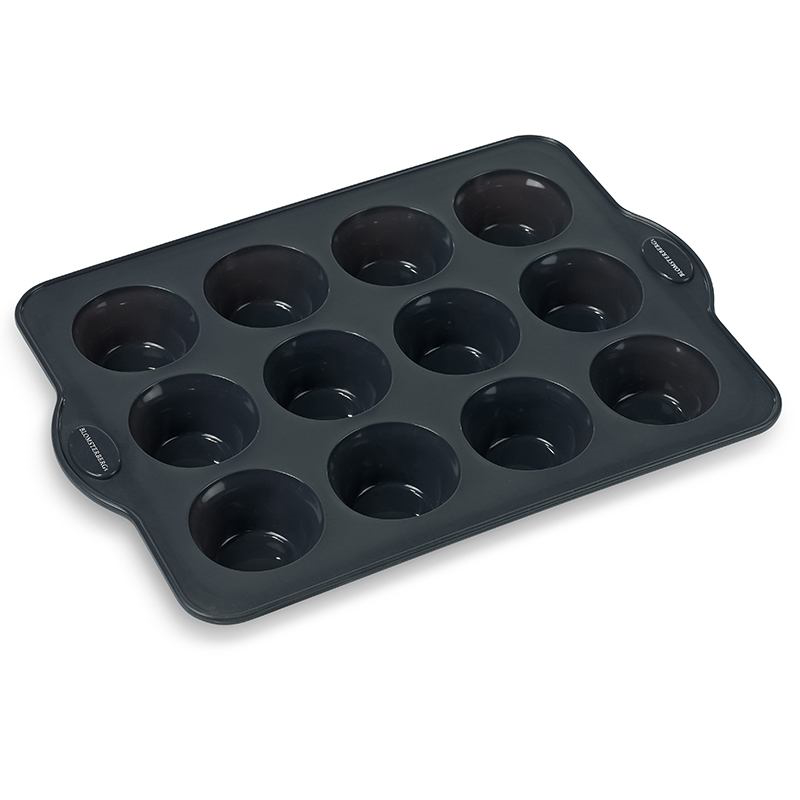 Blomsterbergs muffinform med plads til 12 muffins/ cupcakes. I silikone med stabiliserende stålkant. Hver form rummer op til 0,75 ml. Hele formen måler 36,2×25,3×3 cm. Kan anvendes i ovn op til 220 grader. Tåler fryser