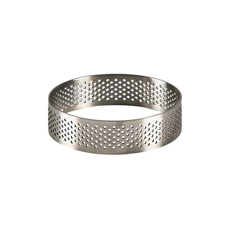 Rund tærtering i perforeret rustfrit stål til sprøde tærter, pizzaer, runde brød og lignende. De fine huller sørger for, at dejen kan komme af med dampen under bagningen. Det sikrer et sprødere resultat, og samtidig glider dejen ikke ned ad siden