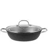 Er du også vild med støbejernets rå og rustikke udtryk, men knap så vild med vægten af det robuste materiale. Så er Nordic Kitchen serien noget for dig. Lækre gryder og pander i let aluminium men med looket fra støbejern. Eva Solo kasserolle 1,5 ltr. Ø16 cm med egetræsskaft der ikke bliver varmt. Kasserollen er produceret i aluminium med sort overflade i støbejernslook. 4-lags Slip-Let belægning og passer til alle komfurtyper – også induktion. Tåler maskinopvask