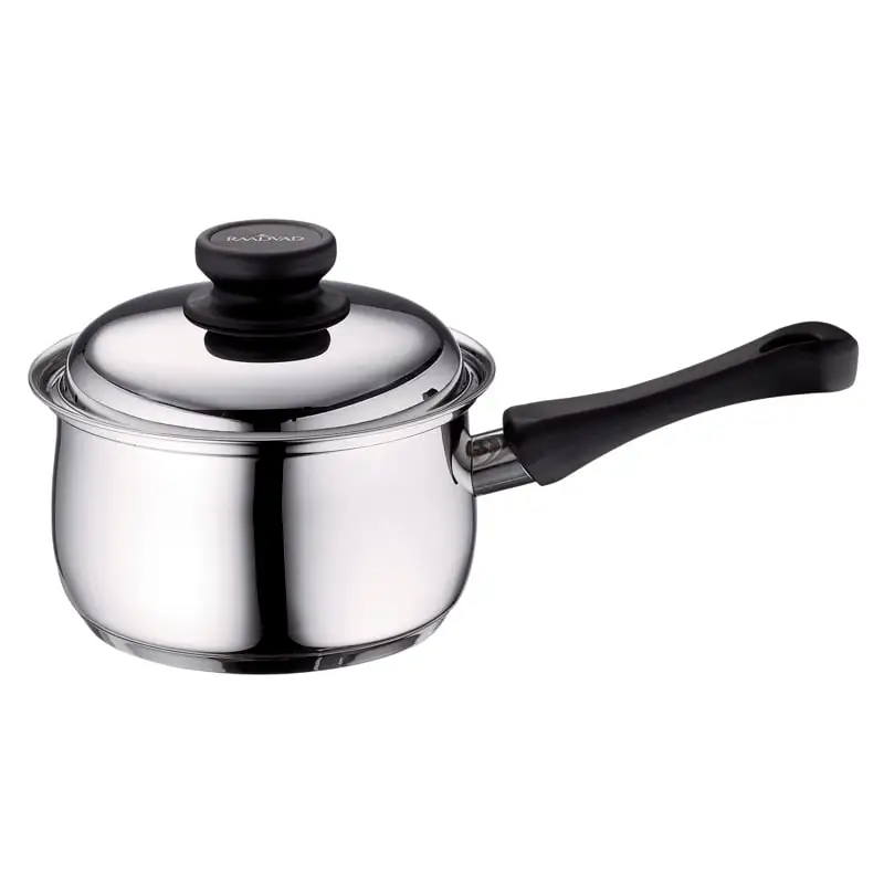 Raadvad skifter navn til Fiskars men det er stadig den kendte Royal gryde. Med låg. I rustfrit stål. Kraftig sandwichbund. Med bakelitgreb som tåler op til 180 grader. Til alle komfurtyper også induktion