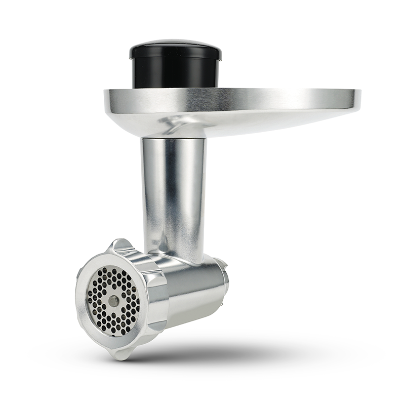 Denne robuste kødhakker passer til Kenwood køkkenmaskiner. Den kommer med 3 skiver til at hakke fint, mellem og groft. Hakkeren er produceret i metal, der giver flotte resultater og kan skære sig igennem selv det sværeste kød. Skal du forberede en masse mad, kan denne kødhakker klare det for dig. Den kan hakke alt lige fra bøffer, kylling, and, fisk og kanin. Det er kun fantasien, der sætter grænser.