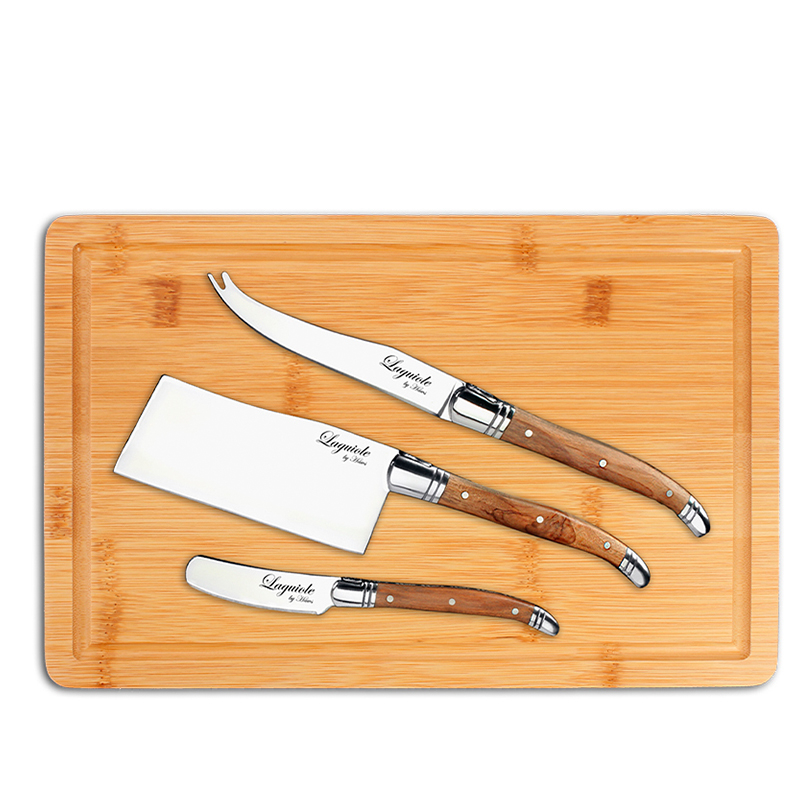 Er du en sand osteelsker? Så skal du ikke gå ned på udstyr til dine yndlingsoste. Hvad end dine favoritoste er: manchego, brie, gouda, emmentaler eller blåskimmel så kan osteknivene fra Laguiole by Hâws klare opgaven. I dette knivsæt får du tre knive i rustfrit stål med et lækkert ergonomisk håndtag lavet i oliventræ. Knivene kan bruges til hårde samt bløde oste. Knivene kommer i en flot sort gaveæske, og er derfor en oplagt gaveidé til osteelskeren. Der medfølger et smukt skærebræt i bambus, som kan bruges til servering af alverdens lækre oste. Serveringsbrættet/skærebrættet er nemt at rengøre, og tager ikke smag af de fødevarer, der bliver skåret eller serveret på brættet. Knivene bryder sig ikke om, at komme i opvaskemaskinen, og derfor anbefales det at de vaskes op i hånanden.