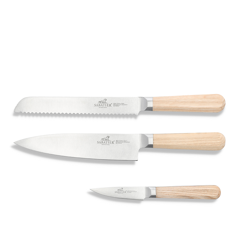 Lion Sabatier er kendt for kvalitet, når det kommer til knive, og det her lækre Altya knivsæt er ingen undtagelse. Sættet består af 1x urtekniv 9 cm, 1x brødkniv 20 cm og 1x kokkekniv 20 cm. Denne knivserie er elegant, stilren og robust, og dækker alle behov dine behov i køkkenet. Altya serien er perfekt afbalanceret, hvilket betyder, at knivene har den perfekte vægt, og ligger godt i hånden. Klingen på knivene er lavet af 5Cr15MoV rustfrit stål, som er noget af det mest robuste og modstandsdygtige overfor korrosion samt andre påvirkninger. Selve skaftet/håndtaget er lavet i et let kantet design i asketræ. Det anbefales på det kraftigste at vaske knivene op i hånden. Rockwell-hårdhed 56-57 HRC.