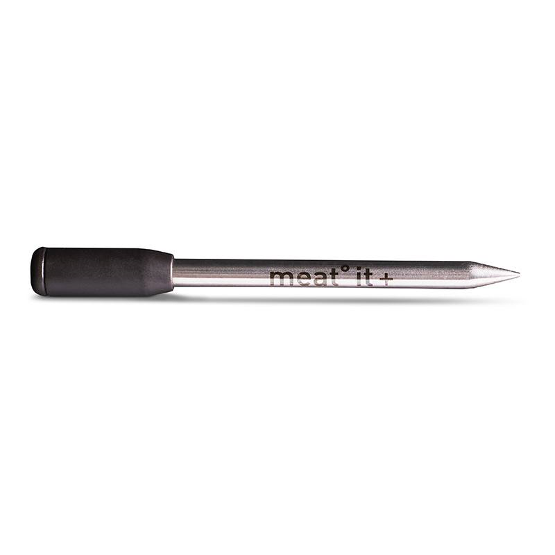 Produktet har en rækkevidde på op til 60 meter. Nu behøver du ikke længere vælge mellem at være sammen med dine gæster eller holde øje med ovnen eller grillen, for at overvåge hvornår maden er klar. Det franske mærke Mastrad har produceret Meat It med 2 indbyggede måleenheder og er helt uden ledning. Produktet lades op ved at det ligger i holderen med beskyttelses låget og er derved klar når det skal bruges. Holderen kører på AAA batterier som medfølger i kassen ved købet. Måler både temperaturen i det der skal tilberedes og hastigheden i hvor hurtigt det går, hvilket er en ekstra smart funktion. Meat IT+ måler og sender informationen videre til din telefon eller tablet hvorfra du kan holde øje med temperaturen samtidigt med hvor hurtigt det går – altså om temperaturen er passende eller for høj/ lav. Måler fra -30 °C til +400 °C. Meat It+ kan sågar også tåle flammer og kan klare det i op til 3 minutter. Ud over at holde øje med temperaturen i kød mv kan den også anvendes til at holde øje med temperaturen under fx rygning af fisk og kød. Holderen har magneter på bagsiden så den kan hænge på fx et køleskab.