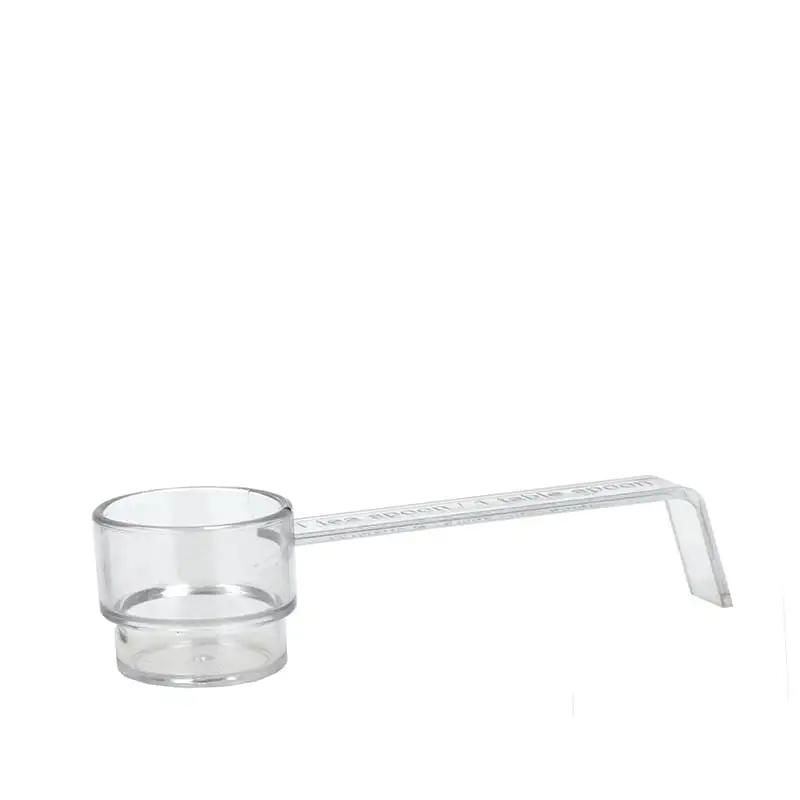 Smart gennemsigtig måleske fra Rösti som kan rumme en spiseskefuld, og har en tydelig markering midtpå, som angiver en teskefuld. Håndtaget har en god længde, så det er nemt at nå ned i poser og dåser. Måleskeen kan også stilles på bordet uden at tippe, hvilket er ret smart. Den er fremstillet i materialet SAN, som er meget transparent, og er utroligt holdbart.