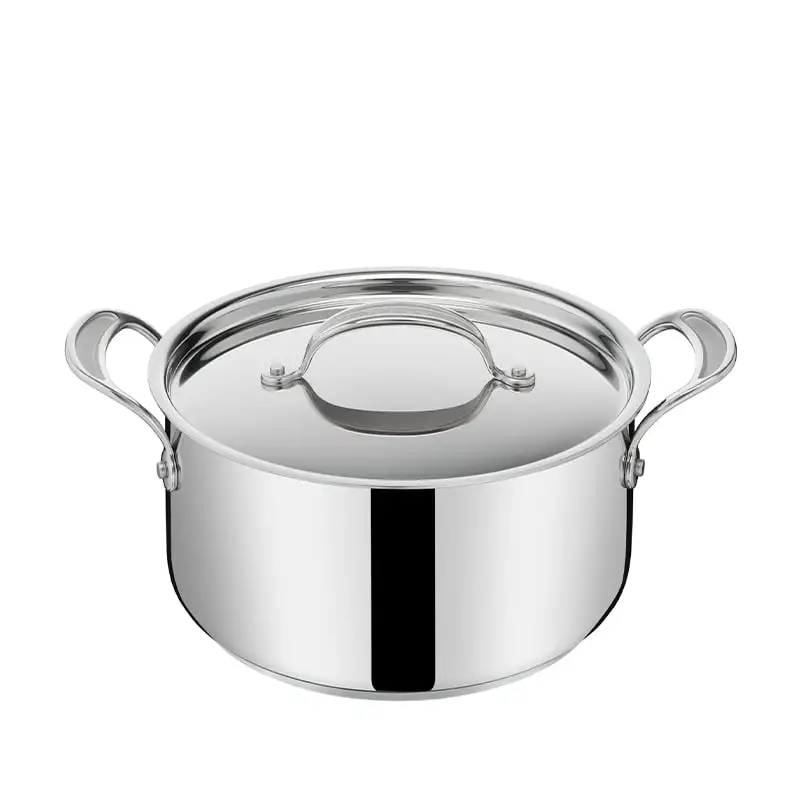 Vi kender alle Jamie Oliver, og hvis der er noget den kendte tv-kok har lært os danskere, så er det, at lækker mad slet ikke er så svært at lave! Derfor har Jamie Oliver samarbejdet med Tefal om at lave en lange række lækre, kvalitetsgryder og pander til hverdagskokken. I denne SS-serie (Stainless Steel) får du kvalitet i form af smukt design i rustfrit stål. Alle pander og gryder er så flotte, at du kan sætte dem på spisebordet og servere direkte fra dem.